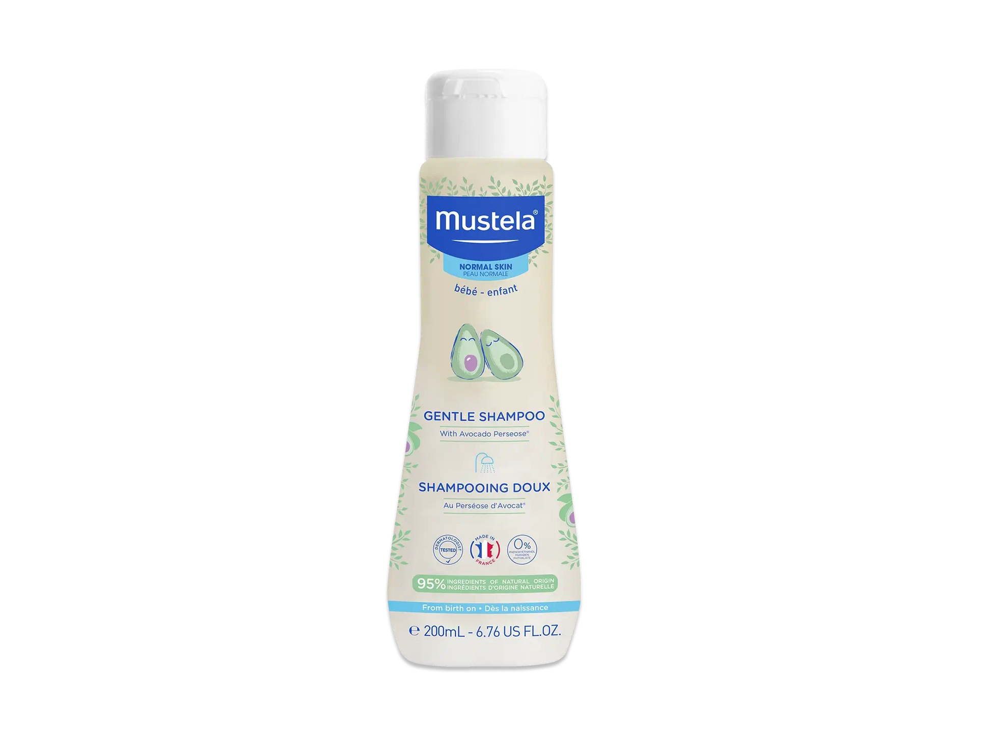 Mustela Gentle Shampoo for Delicate Baby Hair is a specially formulated, mild shampoo designed to cleanse and detangle a baby's fine hair while preserving the skin's natural oils. Made with organic avocado extract, it's gentle enough for the most delicate scalps from the very first days of life.
