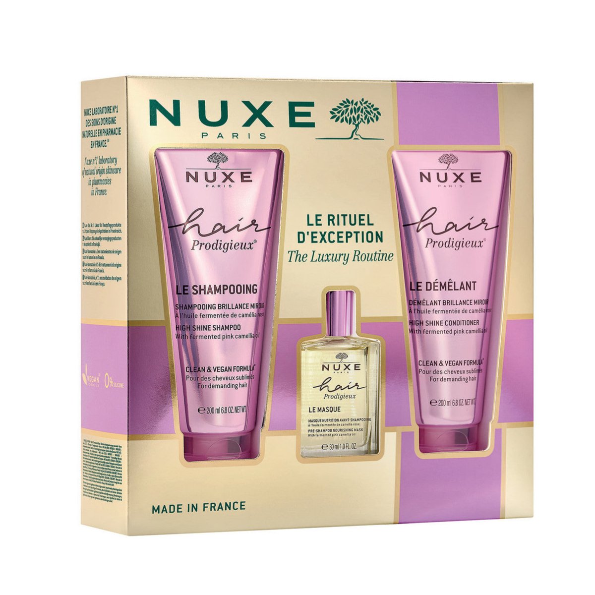 - Includes a nourishing mask, high shine shampoo, and conditioner with the signature Huile Prodigieuse scent